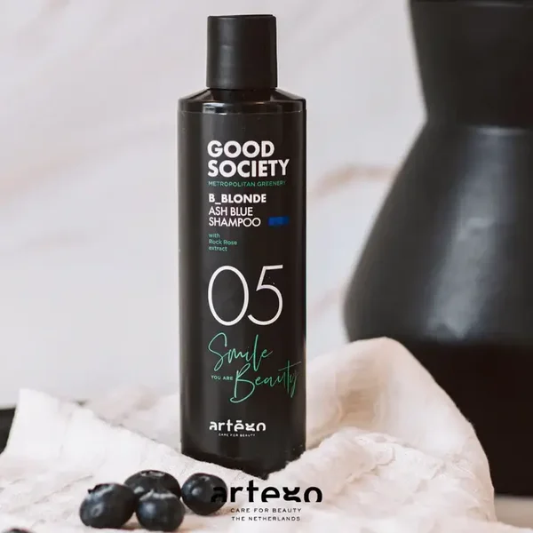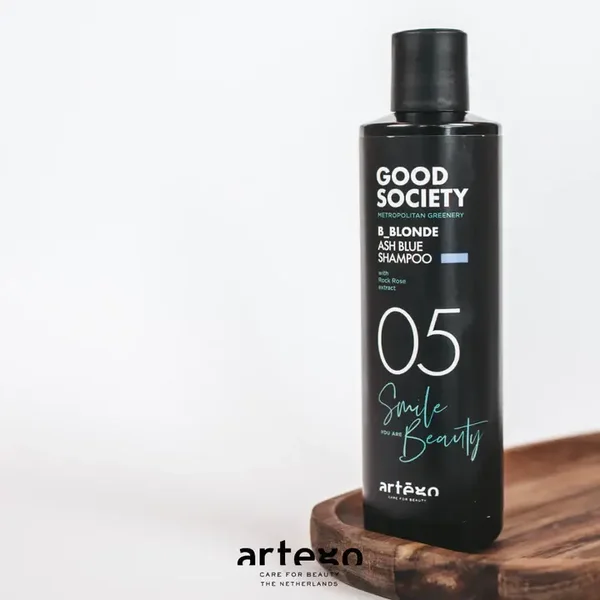 Good Society 05 B_Blonde Ash Blue shampoo komt uit de 05 familie van Good Society welke is ontworpen om te zorgen voor de bescherming en het onderhoud van opgelicht blond, grijs en wit haar, zowel op natuurlijk als gekleurd haar.