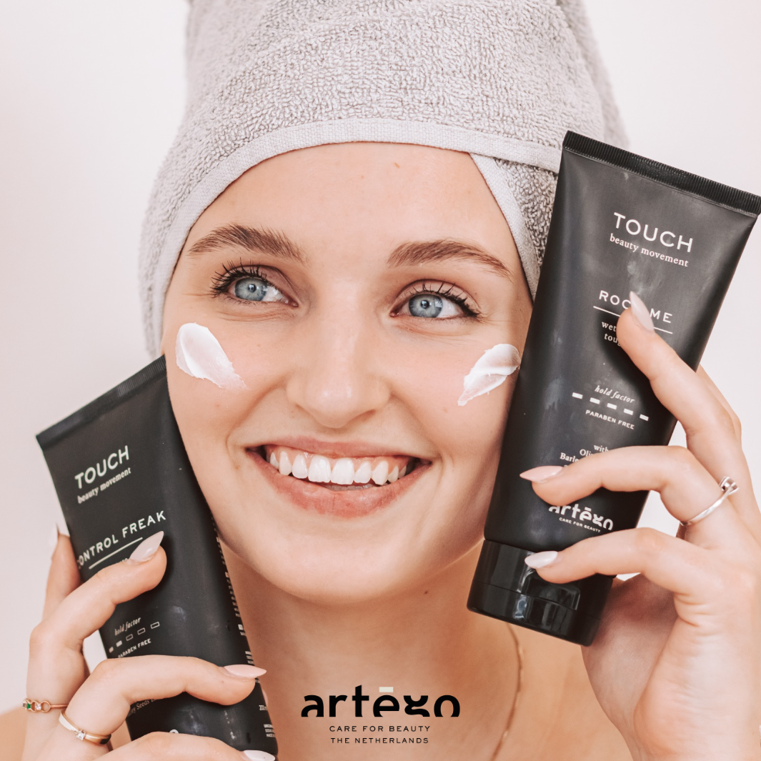 TOUCH Control Freak is een verzorgende, glanzende en vloeibare haargel. Een molding gel met plantaardige glycerine. Voor een flexibele controle en langdurige houdbaarheid van het kapsel. De haargel geeft volume en vorm aan alle haartypen. Het product plakt niet en laat geen residu achter. TOUCH Control Freak is een lichte gel en kan worden gebruikt om een stoere look te creëren. Control Freak is een parabenenvrije haargel.