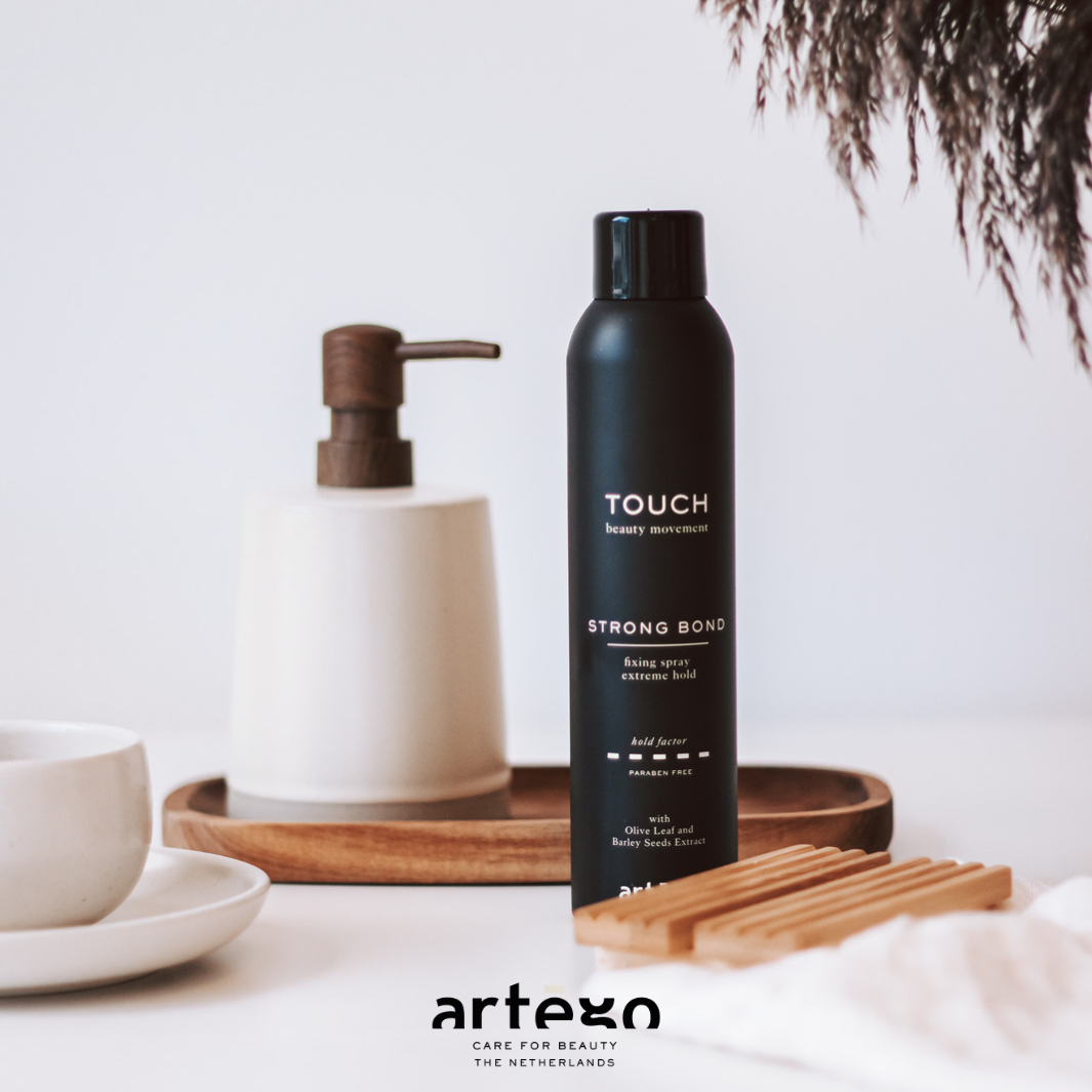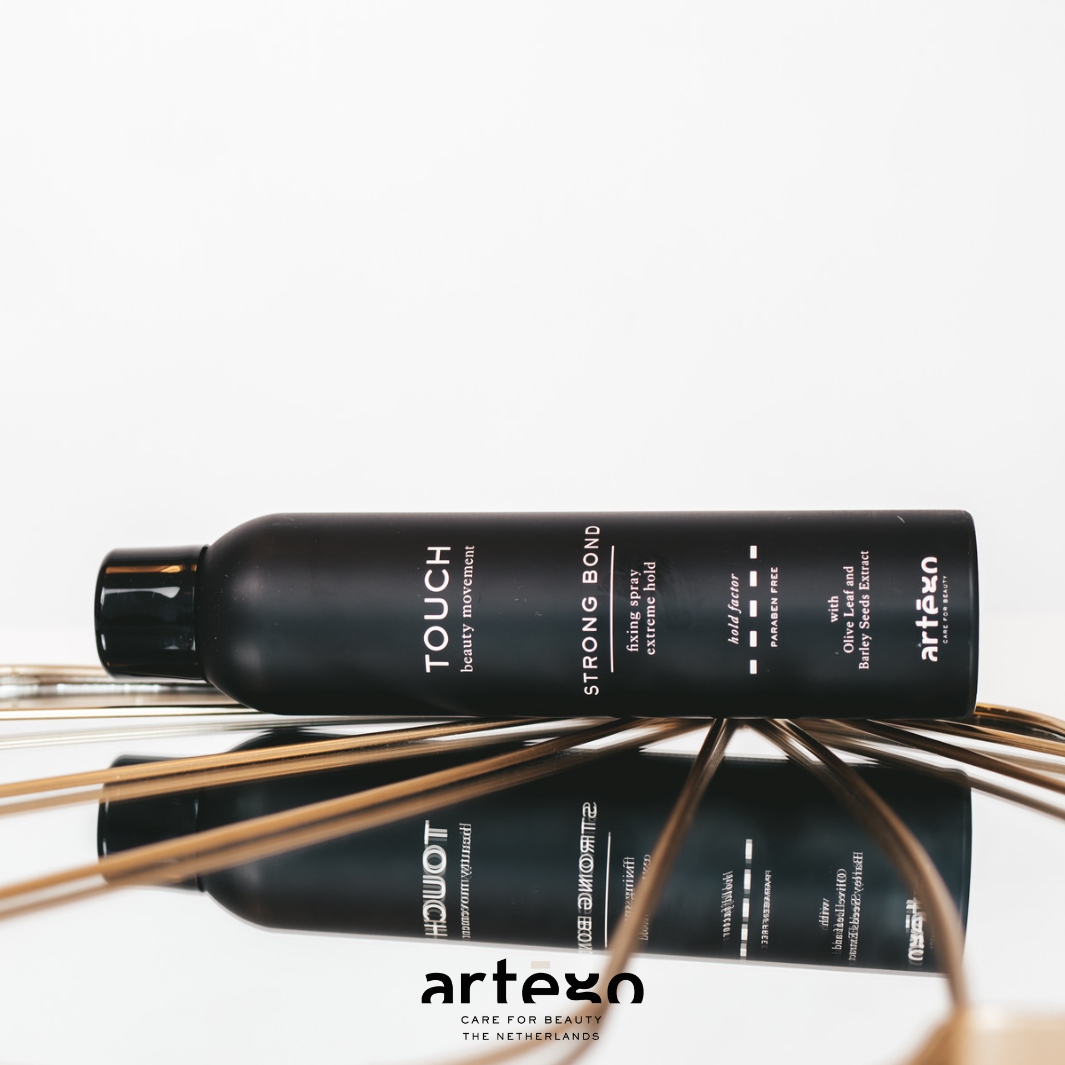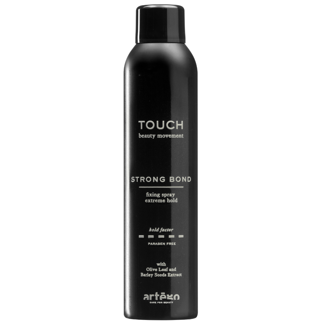 TOUCH Strong Bond is een verzorgende haarlak met stevige hold. De haarlak voegt body en glans toe aan het haar, fixeert en zorgt voor maximale ondersteuning en volume. TOUCH Strong Bond heeft een extra fijne en gelijkmatige verneveling. TOUCH Strong Bond laat geen residu achter en droogt snel. Dit product hydrateert, beschermt en geeft veerkracht. TOUCH Strong Bond is een parabenenvrije haarlak.