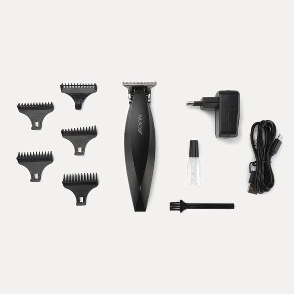 De trimmer wordt geleverd als set met 5 opzetkammen (1mm, 2mm, 3,5mm, 5mm, contour/shading kammetje), een reinigingsborsteltje en olie. De vloeibare reinigingsolie is een speciaal ontwikkelde olie voor de snijbladen van de tondeuse zodat er geen haren blijven plakken tussen de snijbladen waardoor de weerstand en volume worden verlaagd én de levensduur van de tondeuse wordt verlengd. Met de meegeleverde hulpstukken heb je alles in huis om niet alleen een mooie strakke baard te creëren, maar ook je contourlijn bij te houden, een shading effect te realiseren of strakke lijnen en figuurtjes te maken op de hoofdhuid. Ideaal dus tussen de knipbeurten door!